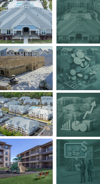 Illustrations were created from real property images and enhanced with AI to align with the brand’s visual style. Additional 3d elements were incorporated with AI to visually convey the concept of investment opportunity.